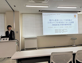 初めての学会発表で緊張しましたが、おかげさまで他大学の先生や薬剤師の方と意見交換ができ、大変有意義な時間となりました。この経験を今後に活かしていきたいと思います。